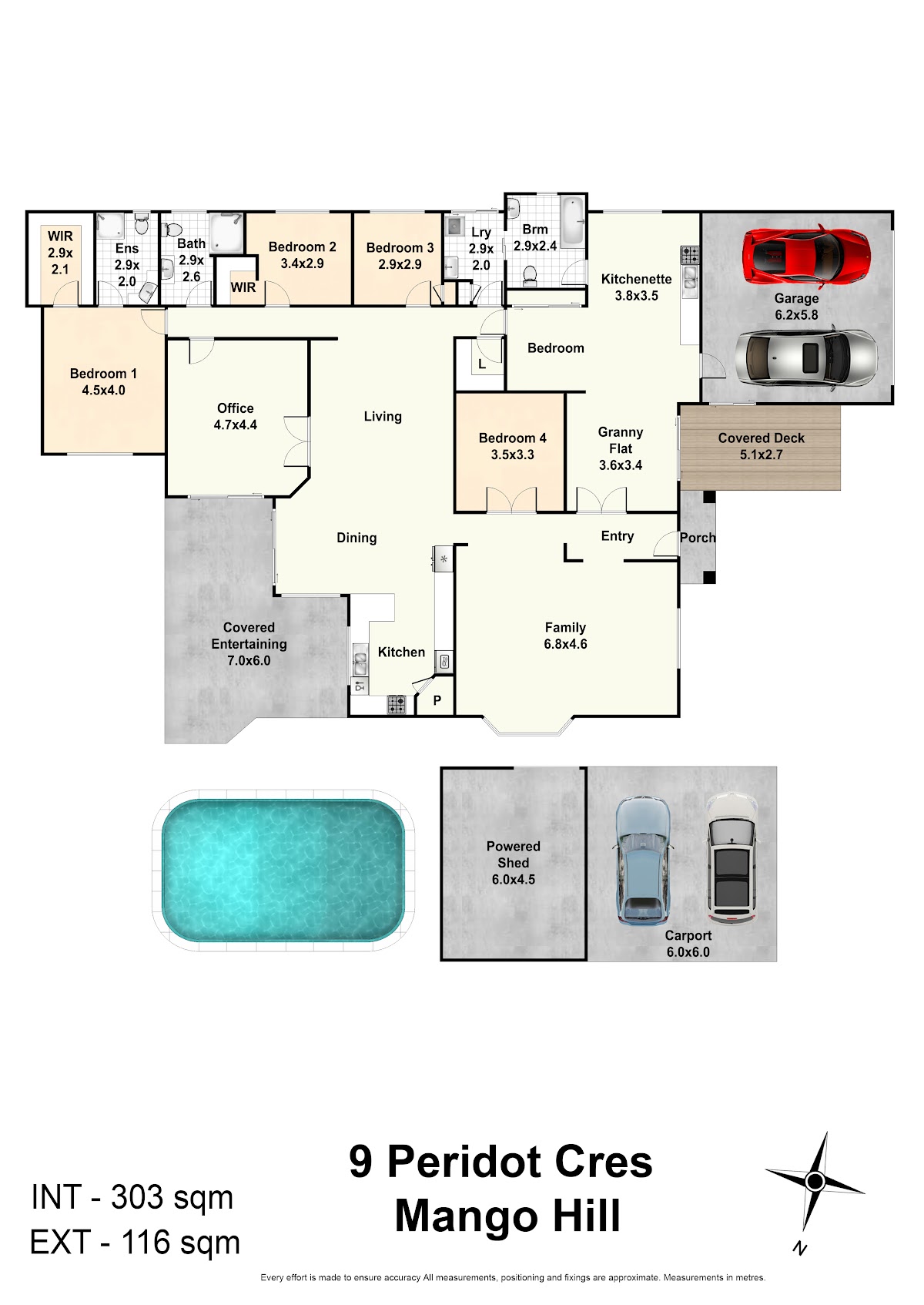 The large open plan living areas create a welcoming, relaxed atmosphere leading from the front entry across 303m2 of indoor & 116m2 outdoor living.