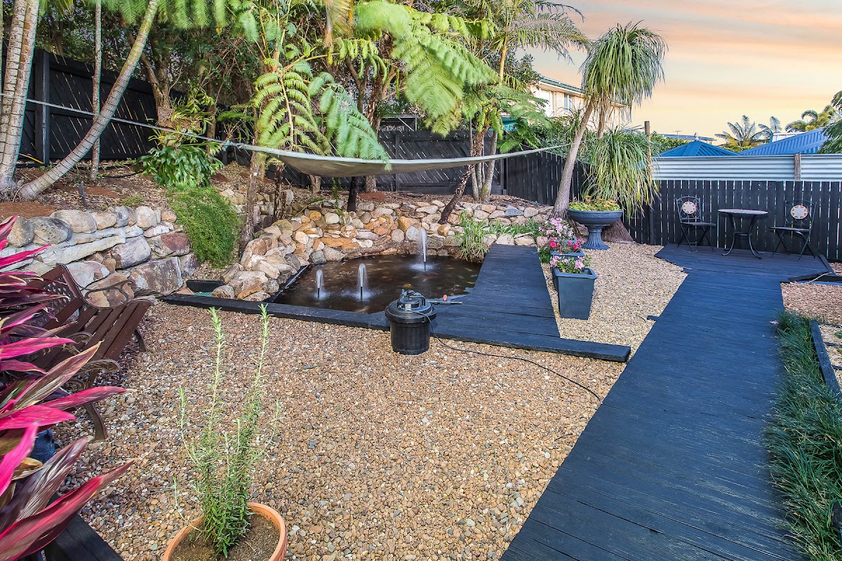 Winding shaded pathways lead all around through tropical low maintenance gardens manicured to perfection. This home offers the generosity of living spaces both indoors and out that you can’t find on smaller blocks. Kids and pets can run free in safety here.