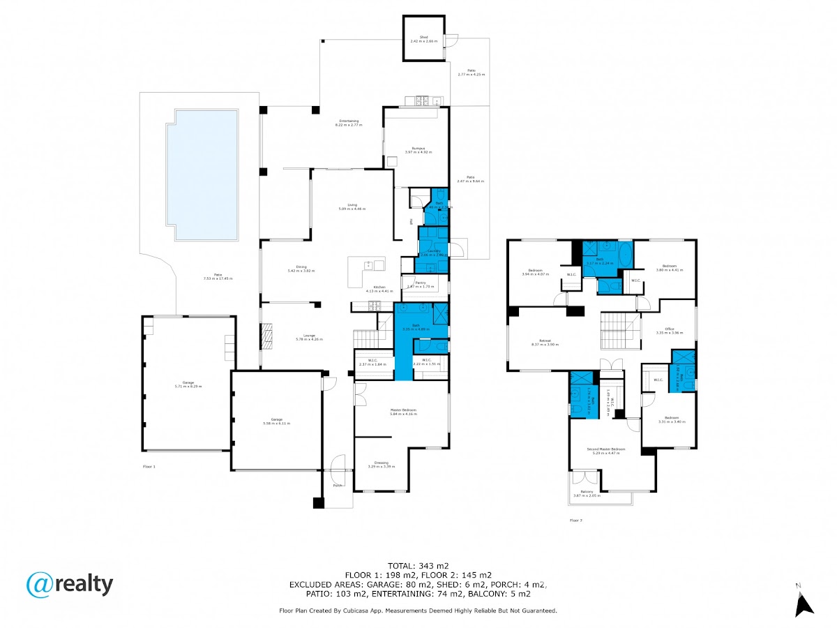 This home features two master suites, each designed for ultimate comfort and privacy. The top master suite includes a private balcony and an ensuite bathroom, offering breath-taking views and a serene retreat. The bottom master suite is equally impressive, complete with its own retreat, his and her walk-in robes, separate dressing room, and a well-appointed ensuite. The third bedroom has its own ensuite and each additional bedroom features a convenient walk-in robe, ensuring ample storage space for everyone.