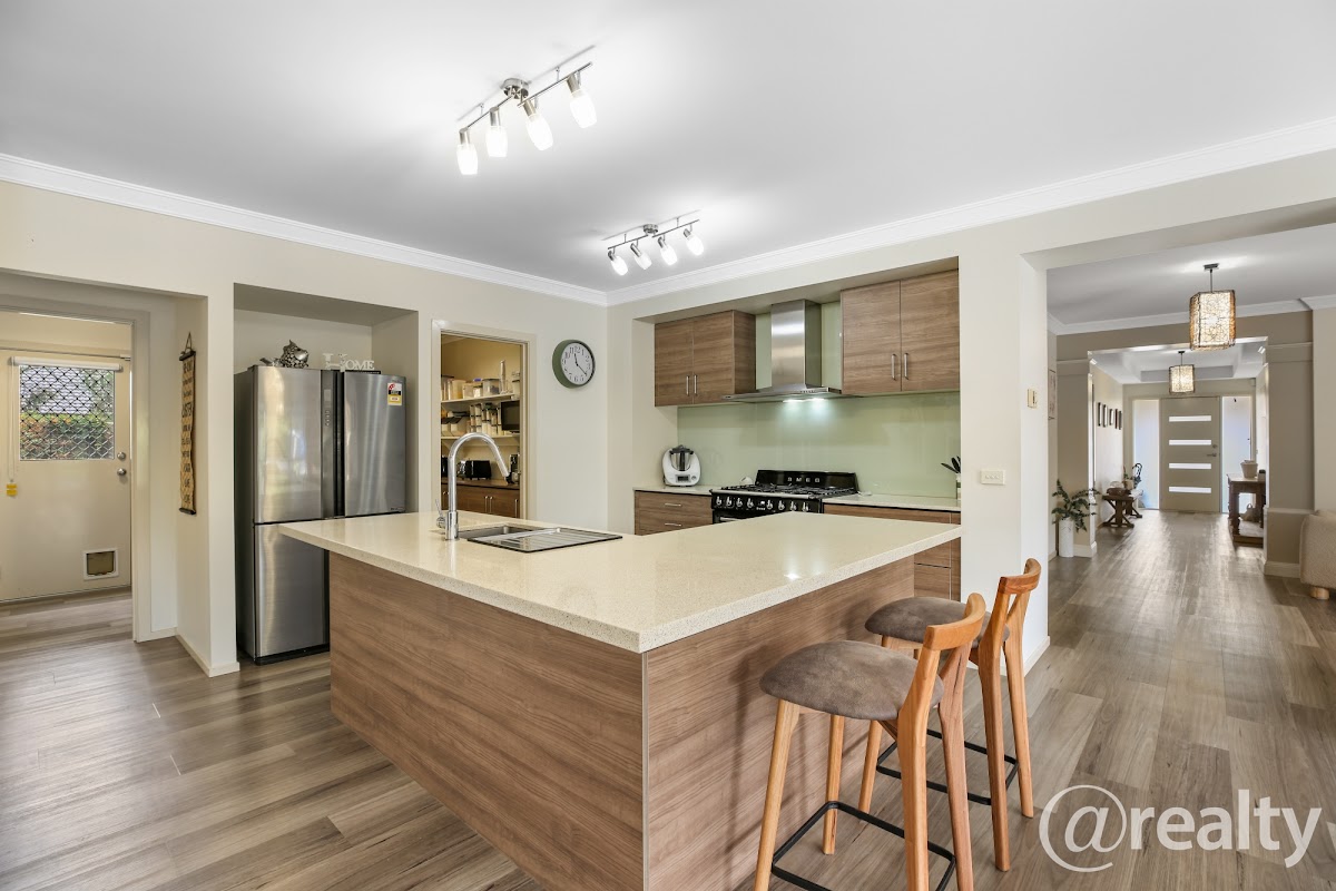 Downstairs, you will find multiple living and entertaining areas, that are perfect for hosting family gatherings or quiet nights in. The spacious rumpus room adds extra versatility, while the modern kitchen, complete with a WIP, is a chef’s dream. The open-plan dining area seamlessly connects to the outdoor entertainment area, creating an inviting atmosphere for meals and celebrations.
