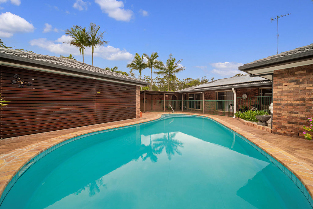 Enjoy an extremely private mineral salt pool, centrally located within the property, and relish the Queensland climate in comfort with the ducted evaporative cooling air conditioning system. A large shed with fans, two water tanks with a pump for the garden and vegetable garden, and a two-car garage with a covered passage into the home complete the practical features of this sustainable oasis.