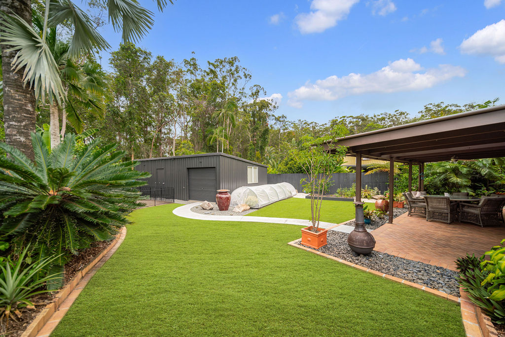 Situated on a sprawling 1058 sqm block backing onto Tewantin National Park, the property offers a harmonious blend of nature and luxury living. Cultivate your own produce in the vegetable garden and chicken run, embracing a sustainable lifestyle.
