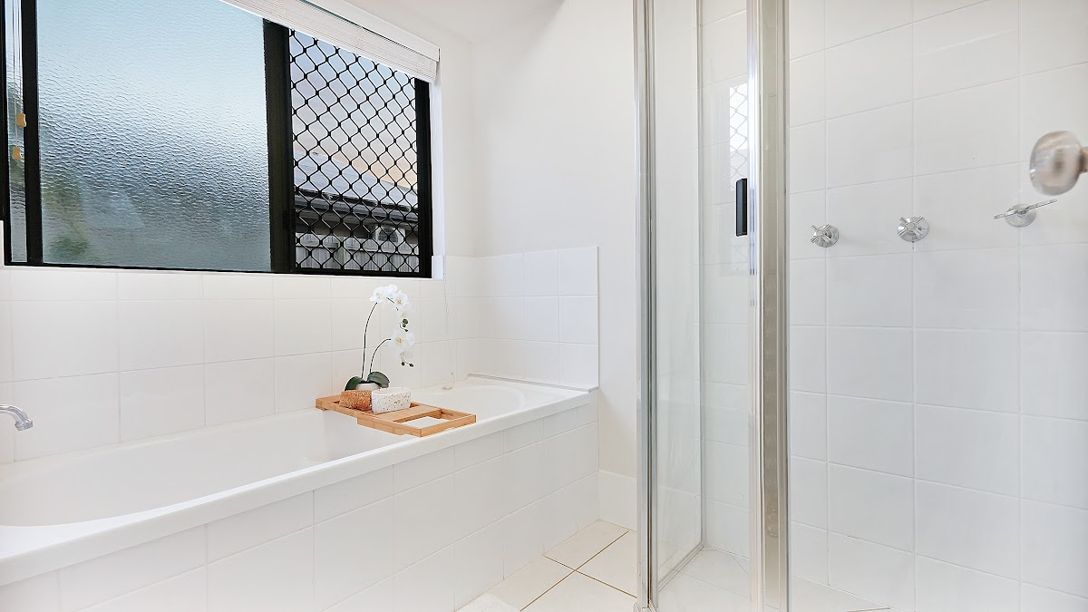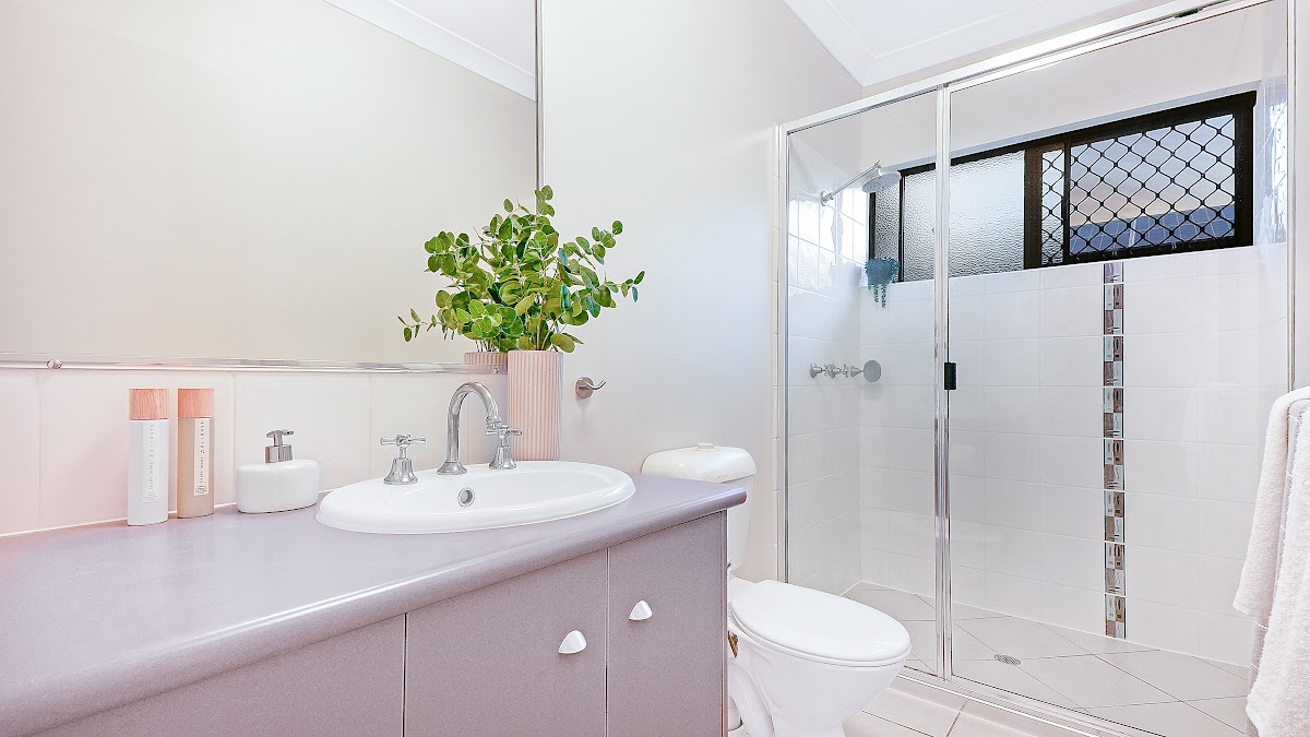 – Family or guest bedrooms offer built-in double wardrobes and garden views, two are perfectly positioned on either side of the 3-way bathroom with shower, deep bathtub. vanity with bench space and extra storage, and a convenient separate toilet