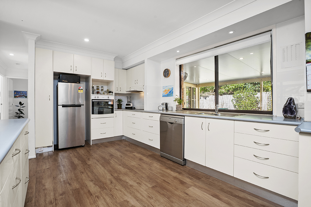 Backing onto subtropical reserve on two sides, you will feel nurtured in nature. Nestled in a quiet cul-de-sac, the 789sqm near level block is elevated with a sunny north west aspect and plenty of space for family and visiting guests. Large modern kitchen with dishwasher and reverse cycle air conditioning are just some of the features this lovely property has to offer. Opportunity for dual living, this block is just a short walk to Waterlily Park, tennis courts and fantastic kid’s playground.