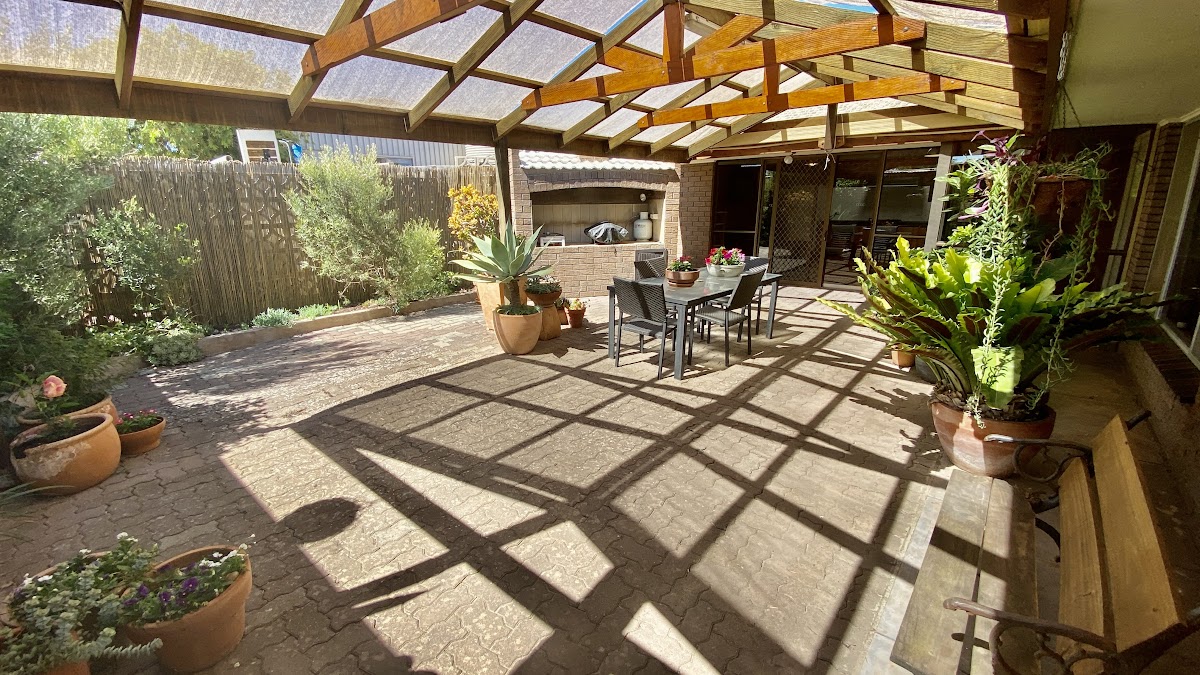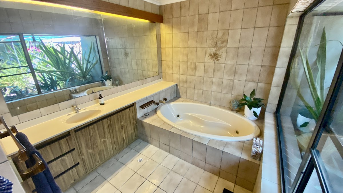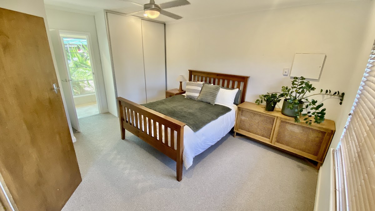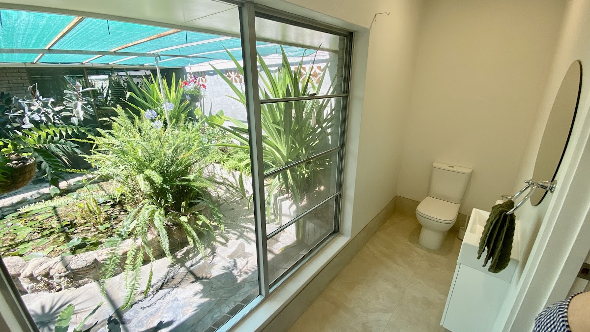 The generous main bedroom includes built-in robes and a private powder room highlighted by a stunning picture window overlooking the internal garden. Two additional well-sized bedrooms also feature built-in robes and ceiling fans, ensuring comfort for family or guests.