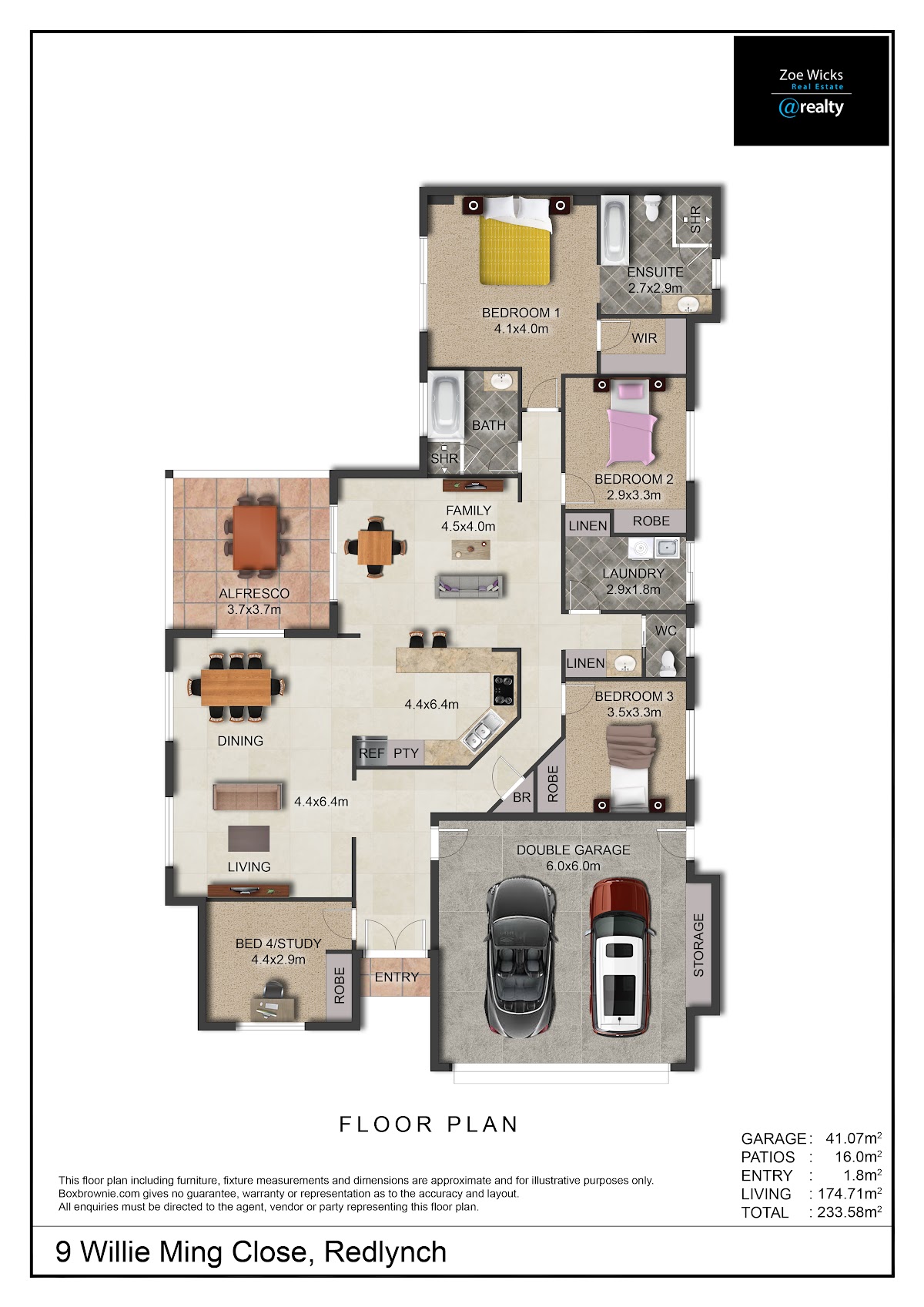In a leafy close with lush rainforest at the back, this immaculate home provides a sensational indoor/outdoor lifestyle opportunity designed by Cougar Homes for families that love to entertain. On a manicured allotment surrounded by blossoming landscaped gardens, the home itself showcases an extra-large master bedroom with walk in wardrobe and ensuite with bath, along with three additional bedrooms (with robes) and main bathroom of equal quality and style. Bathed in natural light, the open-plan lounge and dining area both enjoy mountain aspects and are serviced by a superb granite-bench kitchen complete with stainless steel dishwasher, Smeg induction cooktop and ample cupboard space. Along with split-system air conditioning and fans, the home also features crimsafe screens, tiled floors, a family-sized laundry, excellent storage options, generator, security alarm and double remote lock up garage. Creatively zoned and beautifully landscaped with tropical flowers and fruit trees; avocado, lemonade, mandarin, lemon, lime and South American berry. Hidden at the top of this picture-perfect setting is a secret garden where you can sit back, relax and enjoy the mountain aspects. The north-east facing backyard contains numerous garden areas within, along with an all-seasons al-fresco area with cafe blind for outdoor entertaining. A terrific lifestyle opportunity, moments from Freshwater Creek, walking/cycling trails and parkland, also offering easy access to schools, shops, cafes, restaurants and sporting facilities.