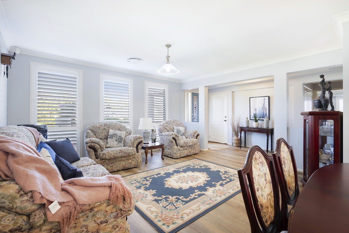 – Elegant Touches: Plantation shutters throughout and floorboards in living areas.
