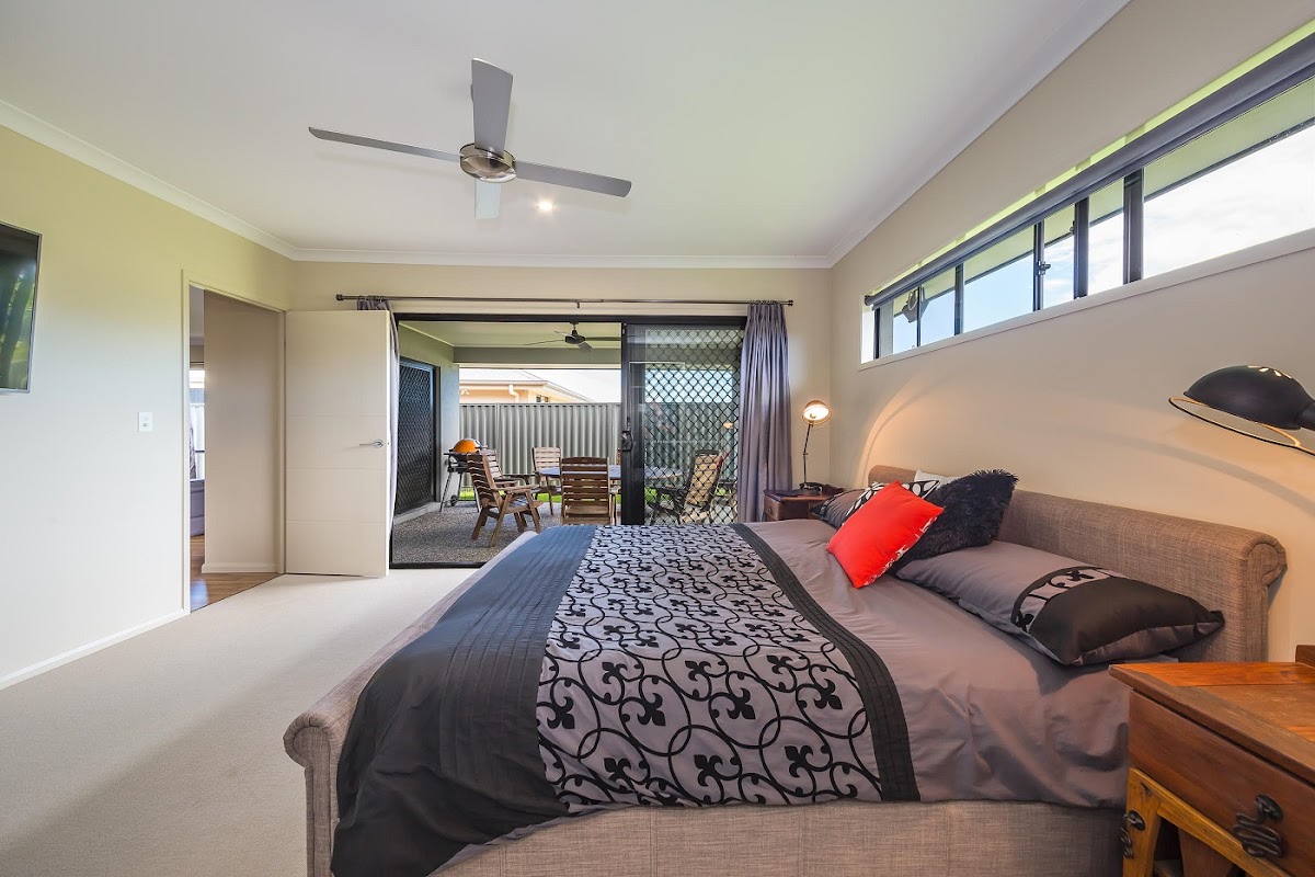 Flowing out through sliding doors you will find the under-roof entertainment area overlooking the landscaped gardens. A great place to relax and unwind after a hard day of golf or fishing!