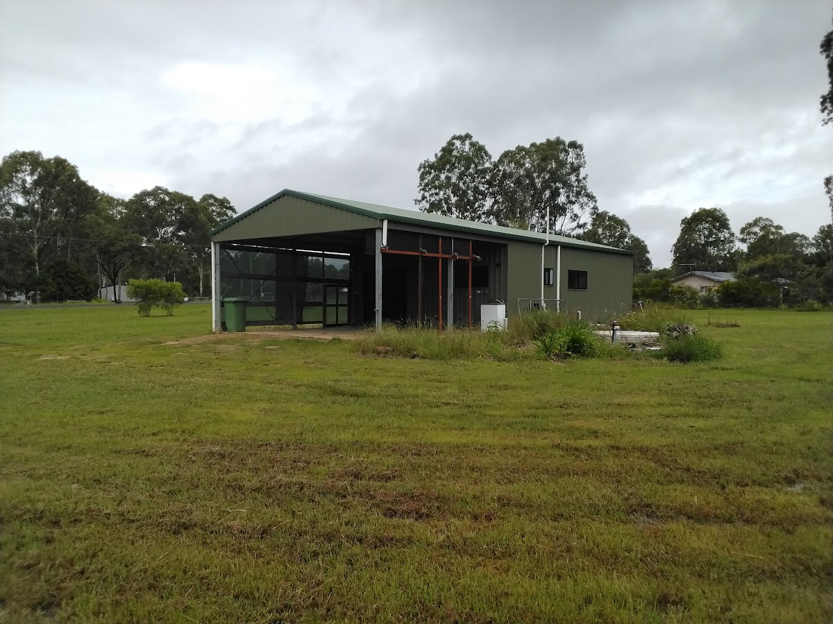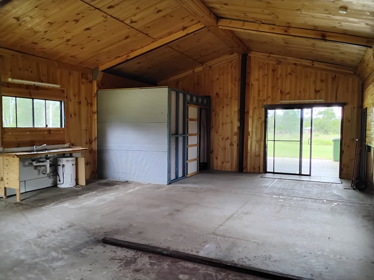 This shed is lined in timber ready for additions, set back off the street but with plenty of land behind you for gardening animals, The shed is council approved as a 10A structure and can be lived in while you build a house, it has power, shower and tiolet and a kitchen sink.