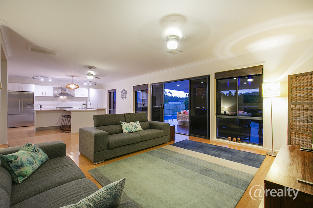 A separate home office/study and formal lounge dining are also on the lower level as you continue down the grand hallway before arriving at the open plan Kitchen, Dining and Living room conveniently opening out to the covered alfresco deck. This delightfully relaxing space opens out to the private Inground swimming pool with water feature and fully grassed rear yard perfect for Queensland entertaining and lifestyle. Ceiling fans and LED lighting complete the all year round space.