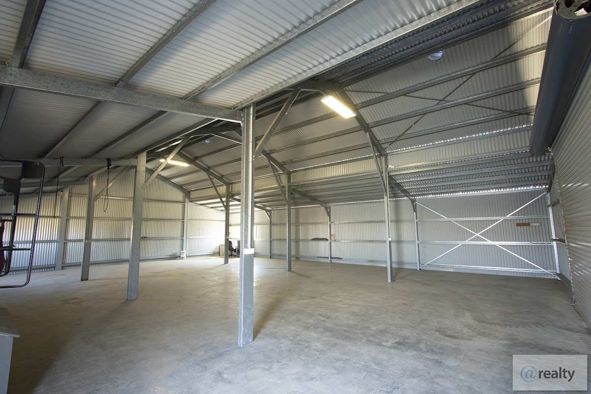 * Shed with Power and Concrete floor : Shed size approx 16 x 12m with approx 3m high clearance at single entrance roller door