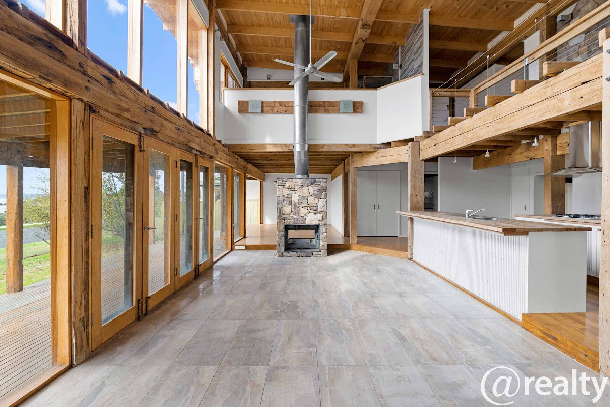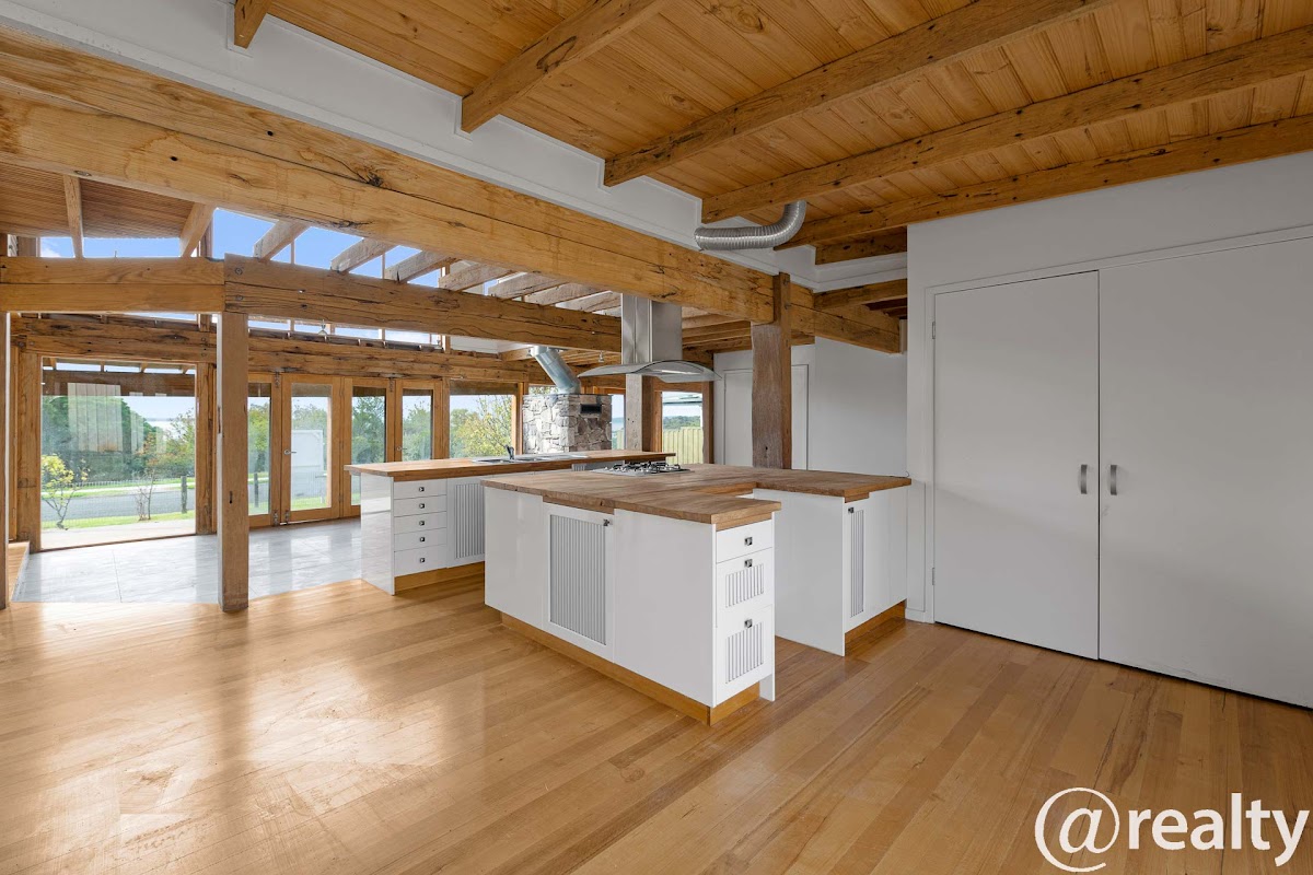 Constructed almost entirely from reclaimed heritage timbers, this unique residence is a true celebration of Australia’s history. Oversized Mountain Ash beams and monumental Redgum posts — some freestanding, others embedded into walls — form the stunning structure, reclaimed from World War II U.S. Army sheds built at Bandiana. The Americans cut the forests big, and that grandeur lives on here.