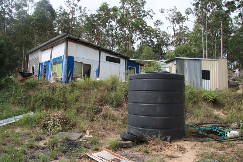 9m x 9m shed with concrete floor and electricity connected and concrete floor with 1 bedroom, kitchen, shower and 18,000gals of rainwater.