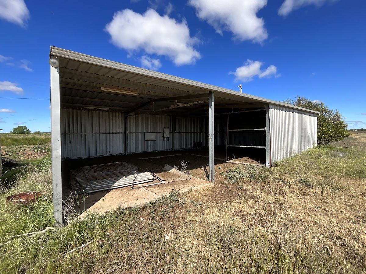* All steel shed with fluro lights and majority concrete floor