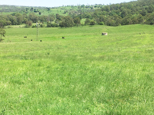 The hills roll down on to fertile black soil flats which would lend to dryland lucerne farming, gullies have an abundance of Kikuyu grass and the rest of the property is covered in native grasses.