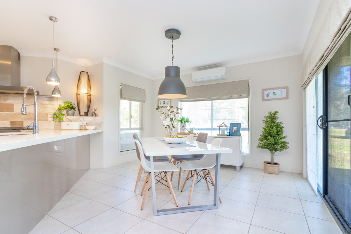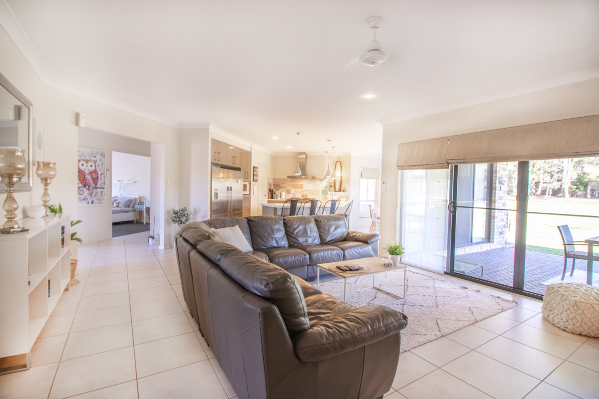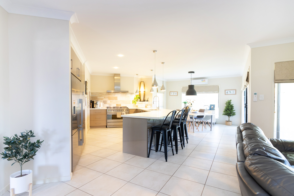 Modern throughout with open plan kitchen with gas cooktop, family & dining area with views over the property.