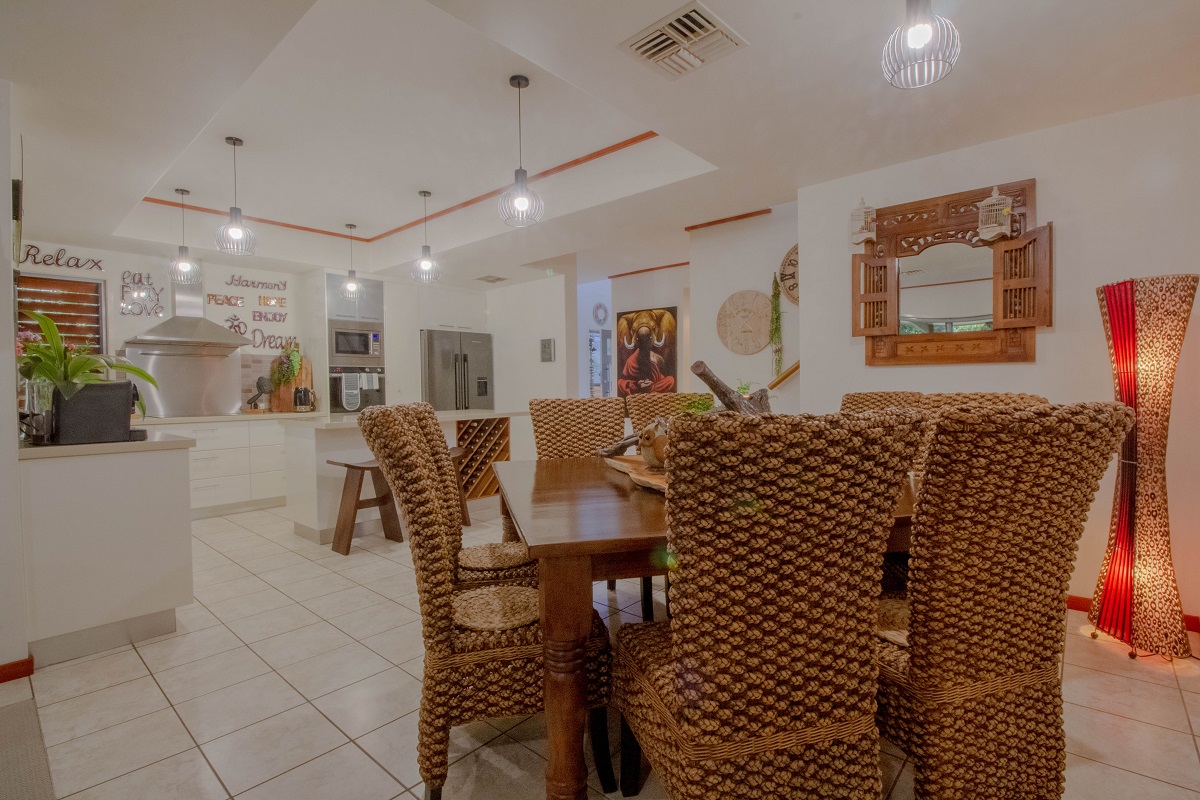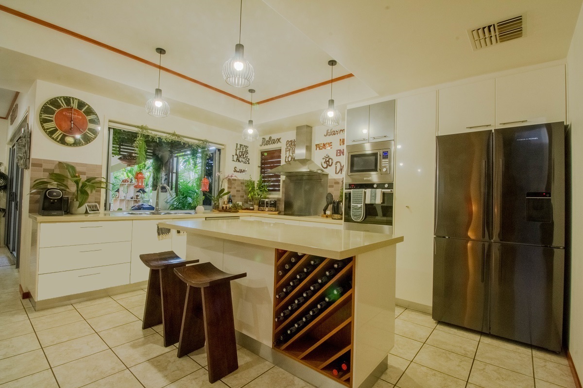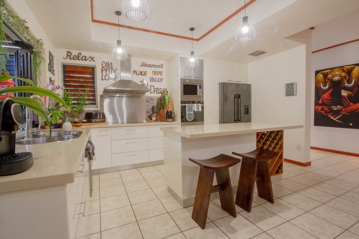 – Designer kitchen; Stone bench tops, with quality appliances, plumbing to fridge, breakfast bar