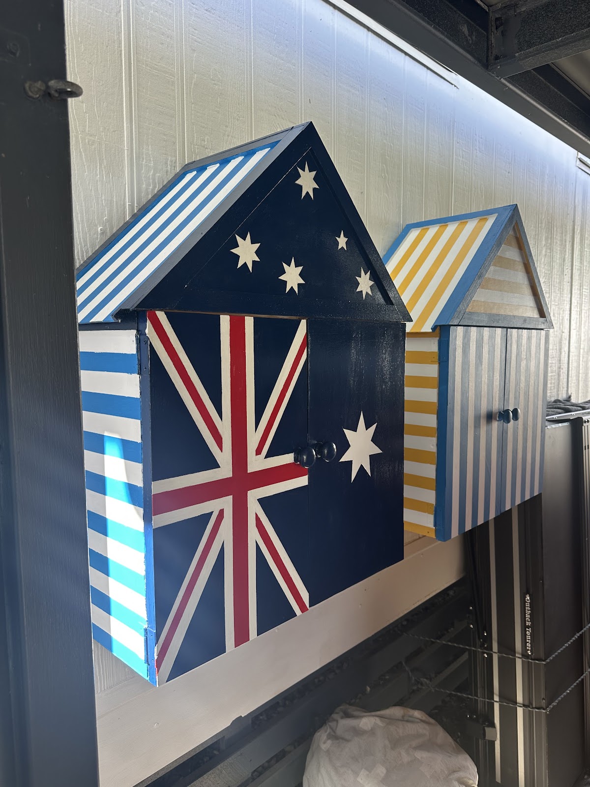 The single carport has a small shed at the end and 2 wall mounted storage cabinets.